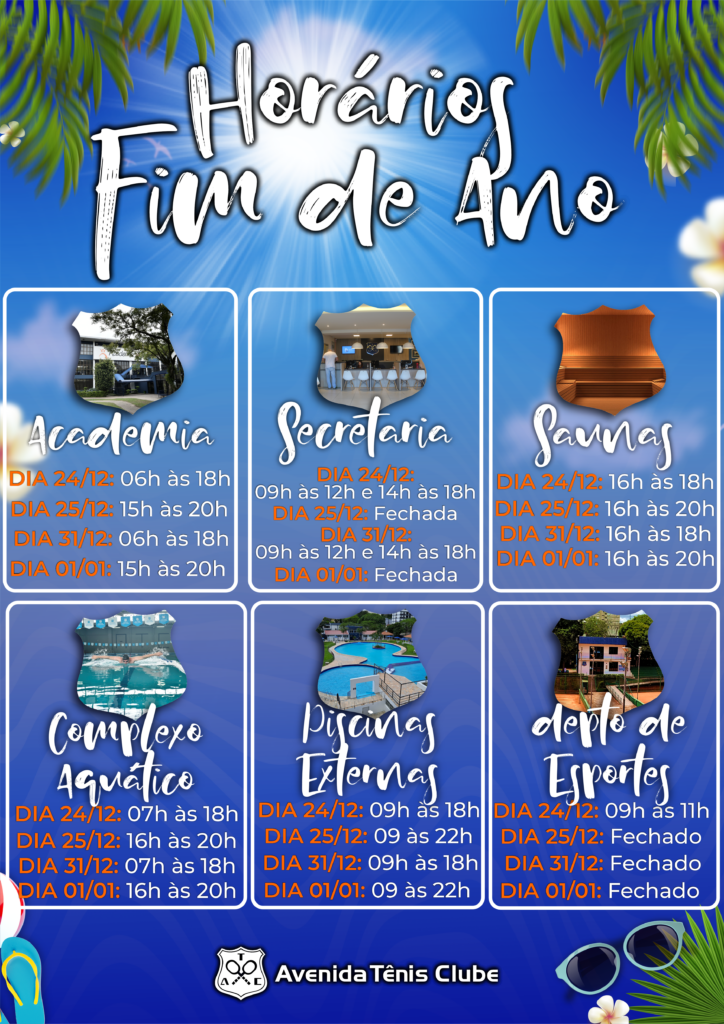 Em razão das festividades de Natal e Ano Novo, nossos horários sofrerão alterações e algumas modalidades entrarão em recesso.